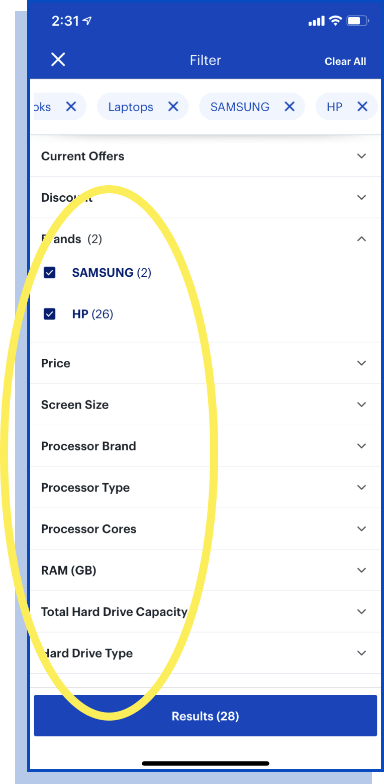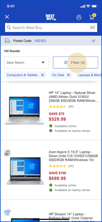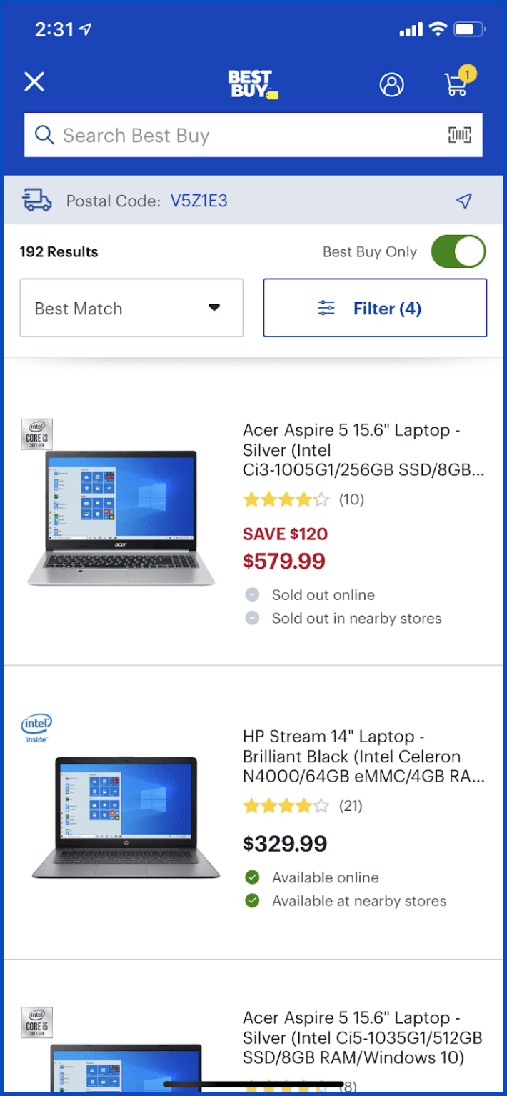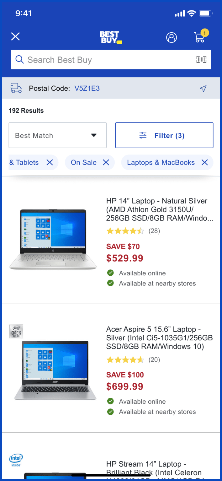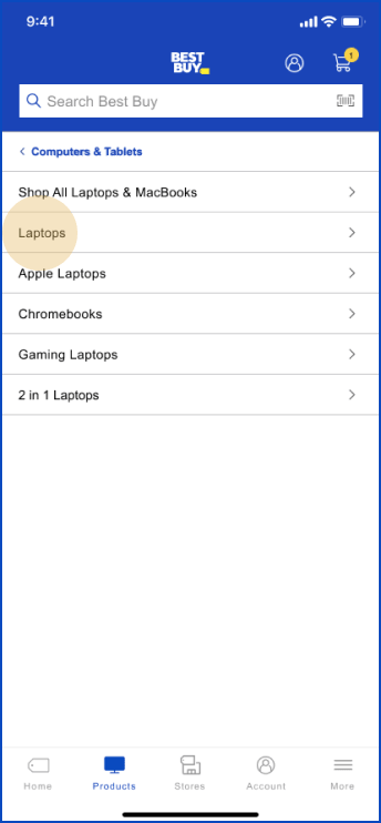 1. Open App and search for laptop