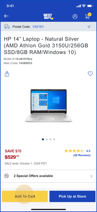 3. Pick one laptop, add it to shopping cart