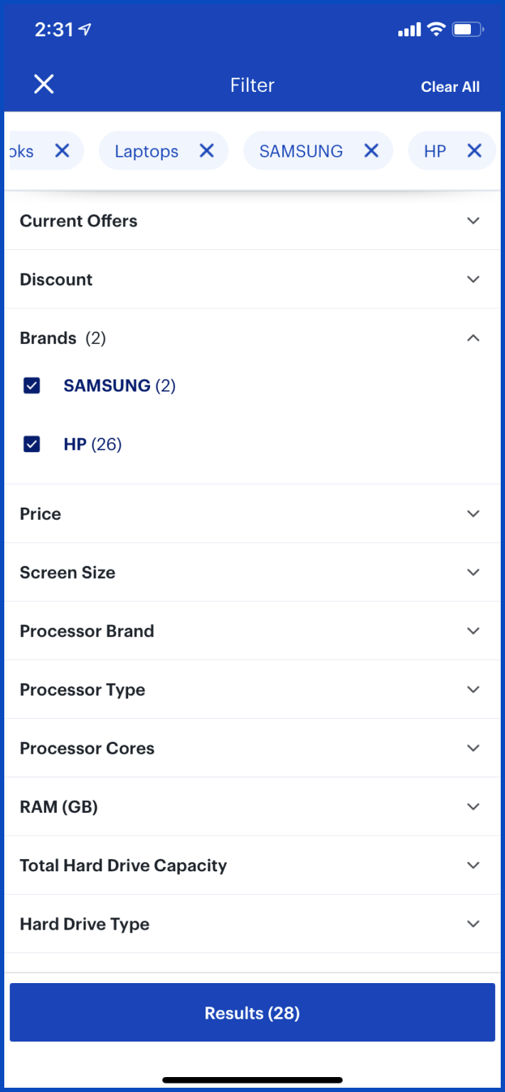 - Add filter capsules to the search page for users’ convenience of
