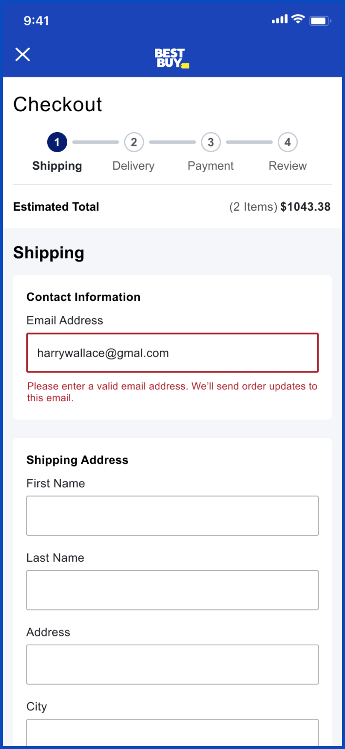 - Add real-time error messages for incorrect information input