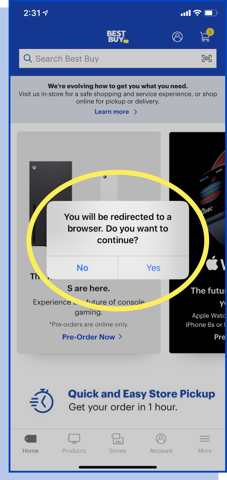 Some featured products link away from the App.